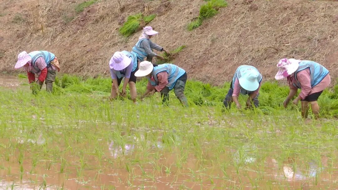永仁县“幸福里”社区产业工人谢吉英说:“今天回到我们村子附近进行春耕栽秧,离家也是比较近,家里面也照顾得到,收入也比较可以。”