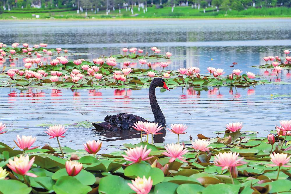 一池睡莲始盛开,千娇百媚入画来。据介绍,东湖有睡莲约7万株,面积大概有50亩,花期4个月左右,6月至8月是盛花期,也是最佳观赏时节。(来源:云南日报)