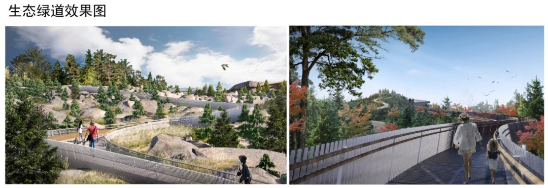 起点位于红云生态公园,终点至山顶观景平台,总长3.7km,净宽2.8m。沿线设置7处观测点。主要有道路工程、交通工程、桥梁工程、管线工程、电气工程、配套工程及景观绿化工程。