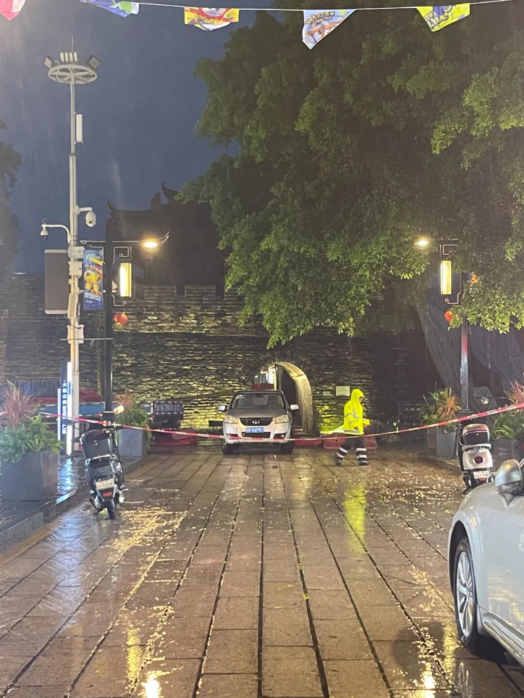 距离南门最近的商户李先生告诉记者,南门城墙东侧凸角部分是从中间坍塌,由于事发时雨势太大,并未产生大的声响,他表示,如果不是工作人员及时赶到通知,离得稍远一些的商户根本不知道发生了坍塌事件。