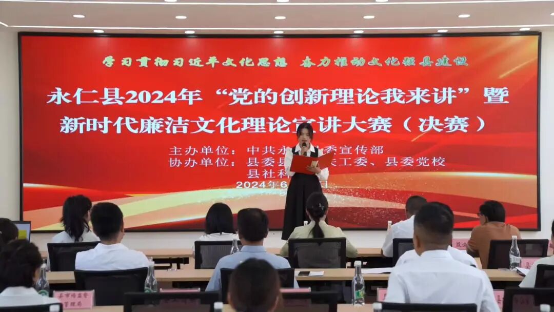 为持续深入学习贯彻习近平新时代中国特色社会主义思想和习近平总书记考察云南重要讲话精神,进一步推动党的创新理论宣讲,6月14日,楚雄州永仁县2024年“党的创新理论我来讲”暨新时代廉洁文化理论宣讲大赛决赛在县图书馆举行。
