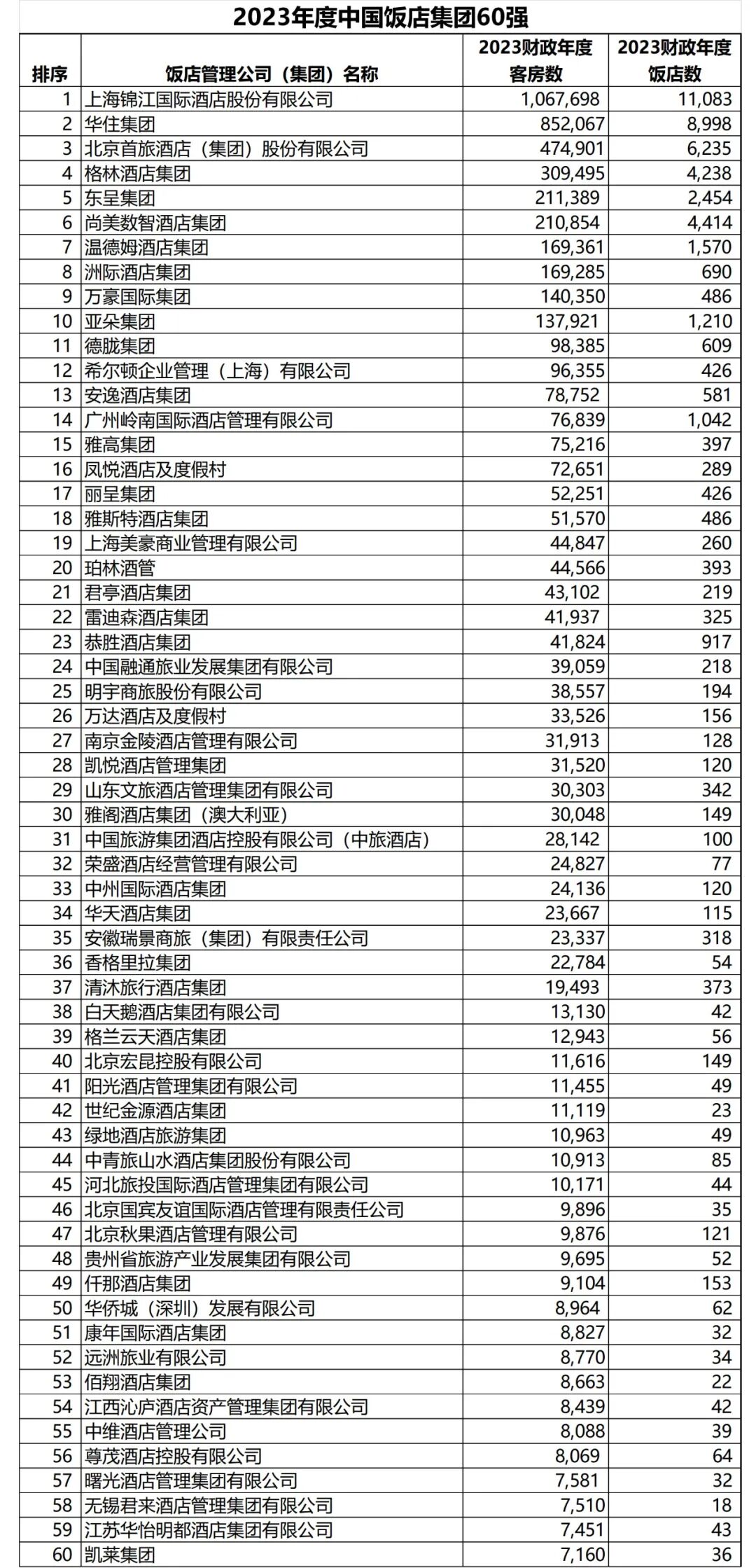 6月17日至19日,由中国旅游饭店业协会主办的第二十一届中国饭店集团化发展大会,在无锡举办。经过严格缜密的数据统计、分析与核实,大会发布了《中国饭店管理公司(集团)2023年度发展报告》及2023年度中国饭店集团60强名单。