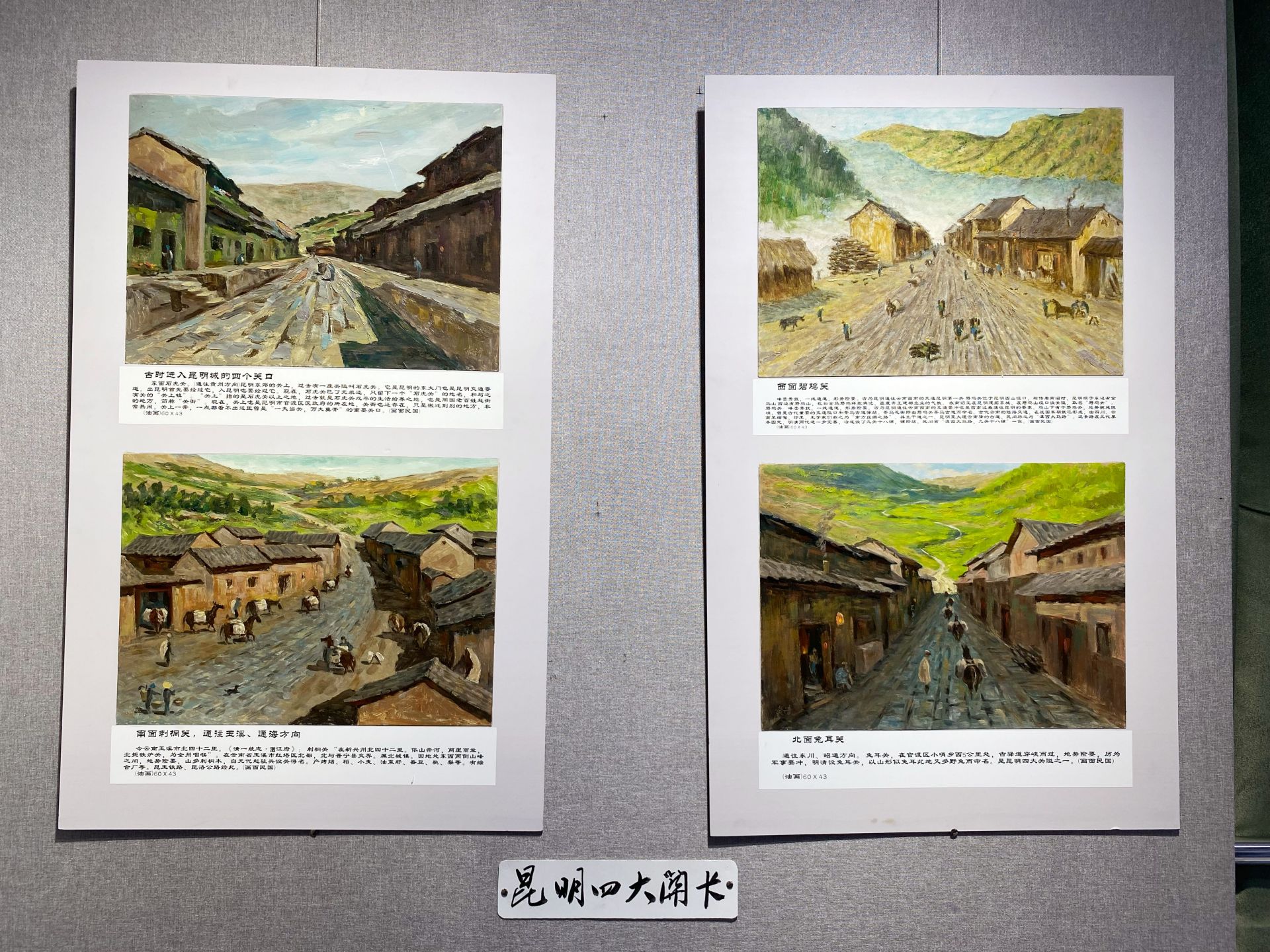 本次展览精选出约250幅作品,以上世纪六十至九十年代为重点,前后延伸,一纵一横,多方面地描绘了昆明在特定时期的社会风貌。其中,图画素材来源于昆明老照片,以及作者本人的实地走访、幼时回忆、听到的老人口述等,历史素材则来自《昆明市地名志》《昆明地名博览词典》《消失的古滇国》《昆明风物志》等书籍,且得到了专家学者的翻阅及修改。可以说,这是一次较丰富、较齐全、图文并茂的昆明历史整编。