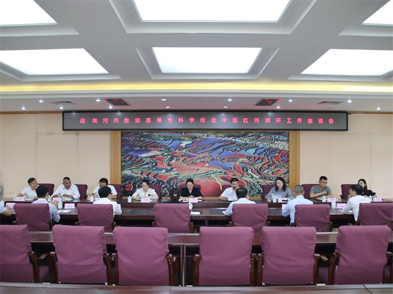6月26日,越南河内旅游高等专科学校考察团一行赴红河州,与红河学院、红河州文化和旅游局举行座谈会,就三方在拓展校地合作、旅游线路开发、宣传推介、学生实习实训基地建设等方面进行了交流探讨。