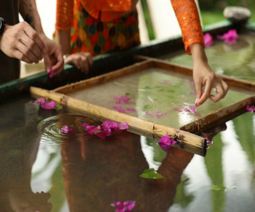 芒团自然村地处孟定镇东面,距市府临沧182公里,距耿马县城78公里,距孟定镇政府驻地7.1公里;共有农户176户,人口820人,是一个以傣族为主的少数民族聚居地,傣族人口占总人口的90%。2012年被评为全省第二批文化惠民示范村,2014年被评为全国少数民族特色村寨;2015年入选国家传统村落名录,同年“孟定芒团景区”被评为国家AAA级景区。芒团傣族手工造纸已有600多年的历史,至今仍然沿用着东汉时期的那一套完整工序,堪称是中国古代造纸术的“活化石”,是迄今为止工艺传承最为完整的手工造纸技术。造纸原料为“构树皮”,傣家人叫“埋沙”。生产过程分为5步流程(浸泡、蒸煮、捣浆、抄纸、晾晒),11道工序。(采料、晒料、浸泡、拌灰、蒸煮、洗涤、捣浆、浇纸、晒纸、砑光、揭纸)。2006年,芒团手工造纸被列入国家首批非物质文化遗产名录。芒团自然村长年从事造纸和工艺纸品加工的傣族妇女有120人,通过不断拓宽销售渠道,年产量由2012年的80万张增加到2022年300余万张,收入达700余万元。目前,全村共培养出非物质文化遗产国家级传承人1人(玉孟嘎)、省级1人(引弄)、市级1人(艾影)。