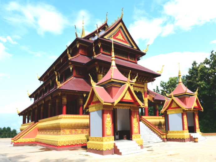洞景佛寺位于孟定镇东北部8公里处的上洞井组,属于市级文物保护单位,洞景佛寺建于1325年,重建于1963年。因1988年11月6日在地震中白塔被损坏,于1994年进行重修。在重建新塔挖掘旧塔时,挖掘出佛像69尊及珠宝、铜像、小塔等千年古塔文物已被云南省博物馆收藏,同时发现了一节3厘米长的暗红色晶体——佛祖的锁骨“舍利子”。还有两片残缺不全的铜片铭文,上面用梵文记载着“这里埋藏着一件佛之圣物”。释迦牟尼“舍利子”的发现,给洞景佛寺蒙上了神秘的色彩。以致影响到整个东南亚,洞景佛寺因此形成了一个佛祖救世济世、普渡众生的佛教圣地,每年都吸引东南亚一带众多佛教徒来参拜。佛寺的大殿,于1962年修建,是斗拱飞檐砖木结构佛寺。“文革”期间被破坏,1989年修复。大殿内奉着佛祖的金身像一尊,两边是十八罗汉听佛祖讲经说法的塑像。背后是弥勒睡佛,22尊佛像神采奕奕,栩栩如生。景区内的洞景白塔,白塔高35.27米,八个附塔高12米,主塔下设八门佛龛,内供菩萨,墙上彩绘佛像金碧辉煌。