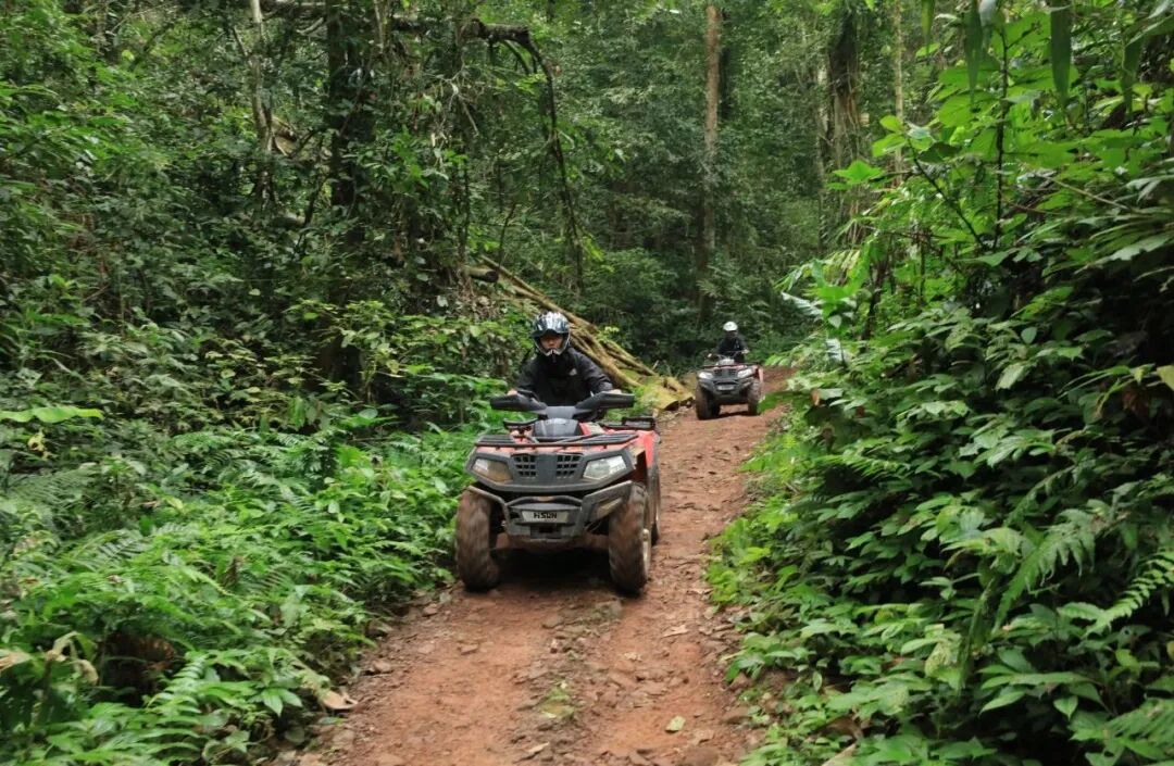 3、全地形车挑战:和朋友一起驾驶全地形车穿越雨林,肆意撒野,穿越泥泞崎岖的山路,流水的小溪,纵情山水间,用最野的方式感受大自然最原始的风貌。