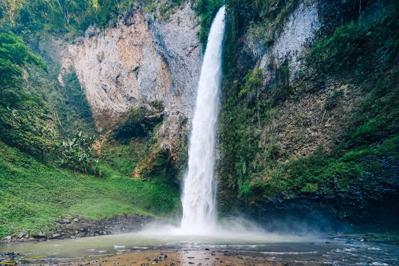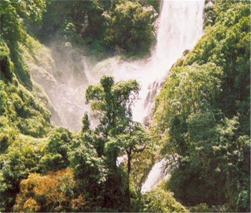 昌明九台瀑布深藏在茂密的原始丛林峡谷之中