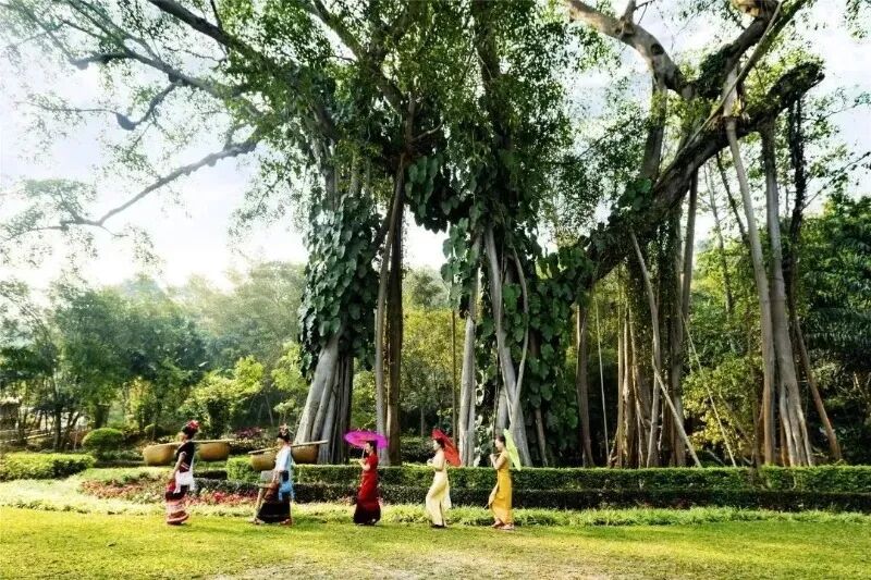 在傣族园可以“天天欢度泼水节”,感受东方泼水狂欢—泼水节,体验“泼湿全身、幸福终身”的乐趣。