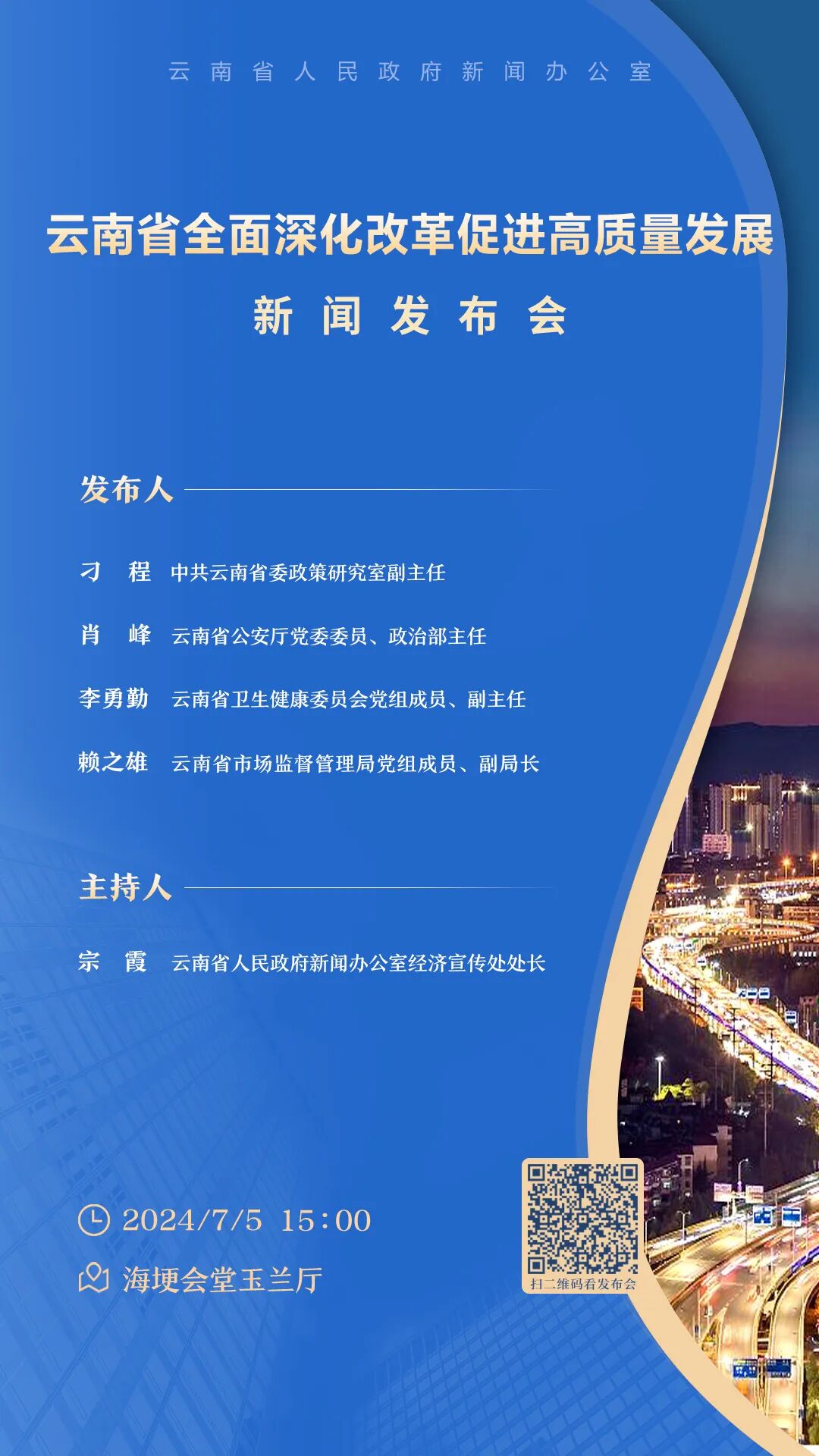 7月5日,云南省人民政府新闻办公室在云南海埂会堂举行云南省全面深化改革促进高质量发展新闻发布会,介绍各项工作成效并回答记者提问。