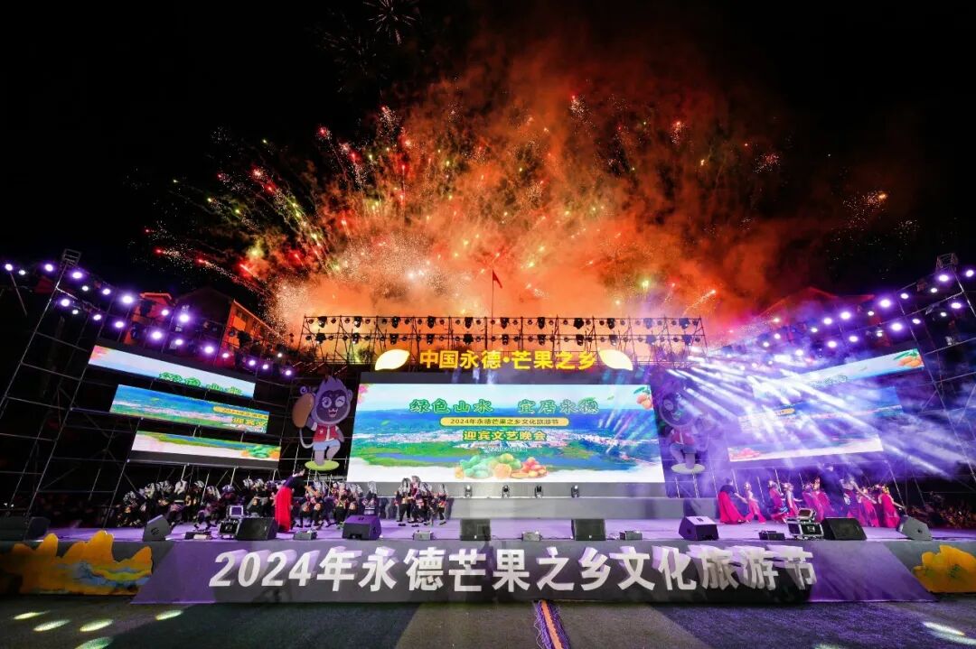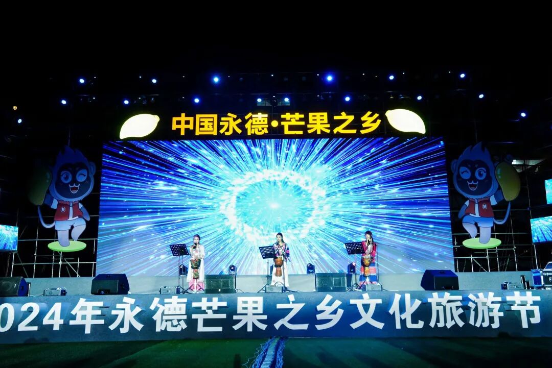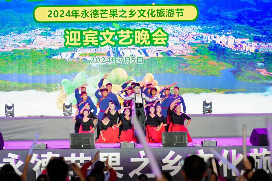 迎宾文艺晚会点燃2024年永德芒果之乡文化旅游节。晚会上,《一起打歌来》《小小花旦》《窝噜尼》等节目向观众展示了永德的民间文化艺术、人文情怀,传递了“一方水土养一方果实、一方文化育一方人民”的理念。晚会还邀请到丽江晴天姐妹、央视星光大道优秀歌手古亚鹏、国家二级演员乌兰图雅等歌手,他们带来了脍炙人口的歌曲,让各地朋友尽享音乐文化魅力。