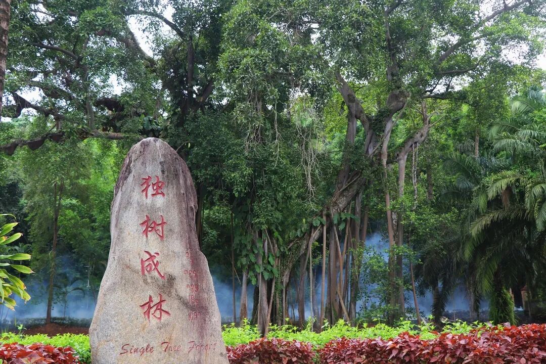 独树成林景区位于西双版纳州勐海县国家级口岸打洛口岸开发区内,距打洛镇政府3.5公里,靠近中缅边境,是一处集热带自然奇观、傣族文化、东南亚风情文化为一体的综合性生态旅游景区。景区内有一棵大叶古榕树,树高50多米,胸径600厘米,这棵古榕树被当地群众称为“美龙卡”,翻译成汉语是“独树成林”,也是摄影爱好、户外猎奇、植物学、科普知识传播者的素材。