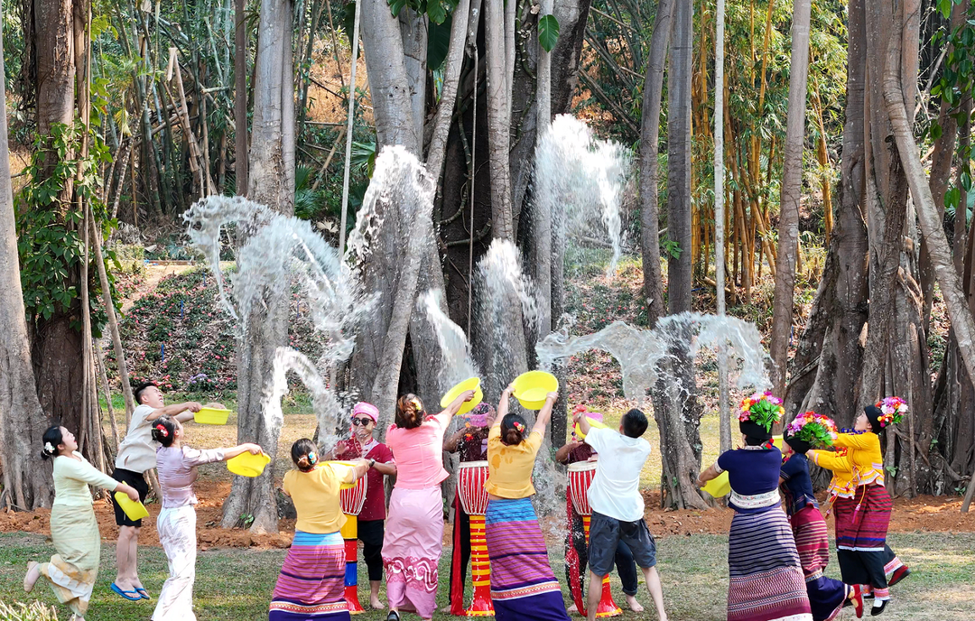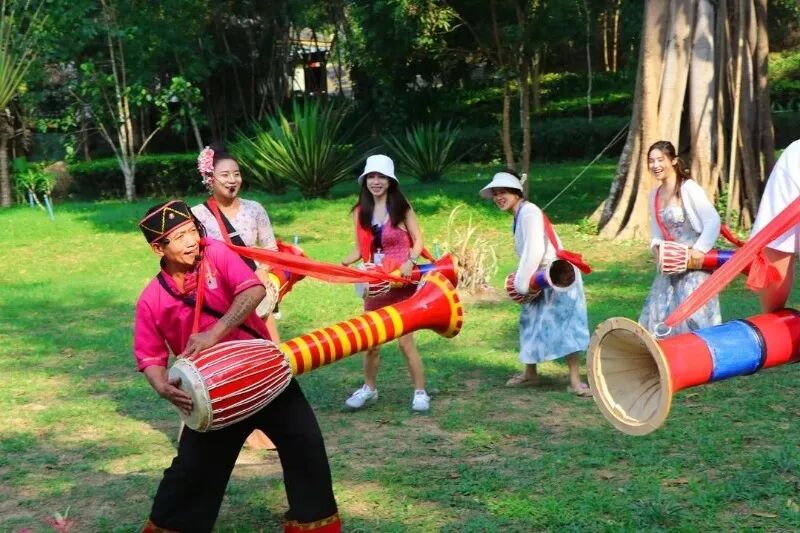 2、非遗体验:通过非遗传承人的讲解、教学,体验民族象脚鼓的魅力文化;在雨林课堂上学习简单的傣族文字,用傣文书写美好和祝福。