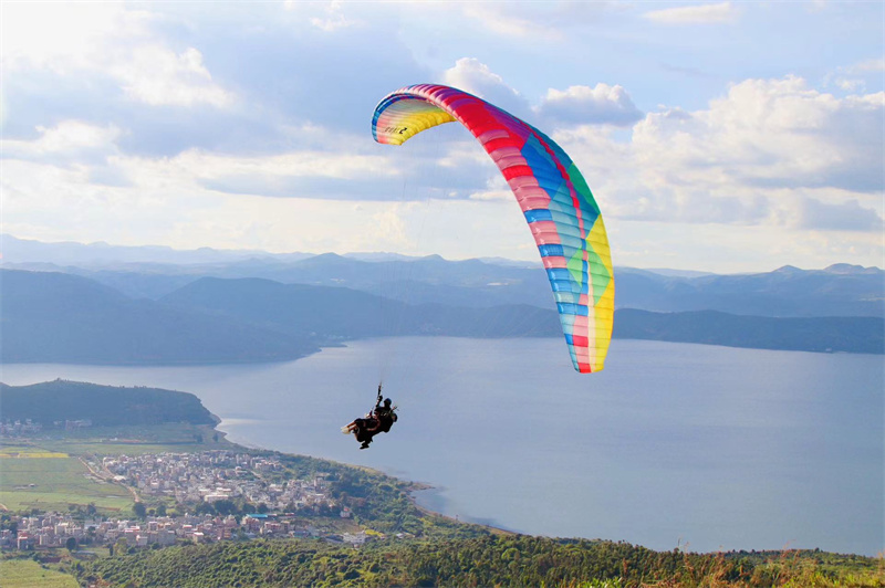 可打卡地:澄江市海口镇竹园滑翔伞基地、江川区路居镇抚仙湖滑翔伞基地