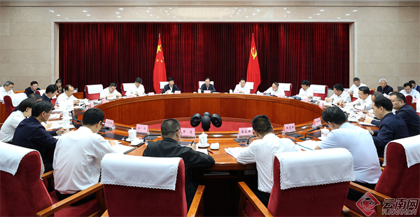 (7月3日,王宁在昆明主持召开州(市)党委书记座谈会。记者 雷桐苏 摄)