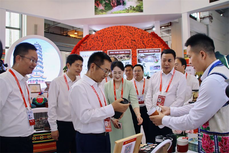 省、州相关领导及州市观摩团到楚雄旅游形象展区巡馆,听取楚雄展区情况汇报,并与参展单位、企业进行交流互动,了解楚雄文旅产业发展、非物质文化遗产保护与传承等情况。