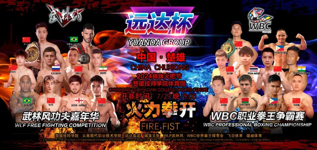 楚雄技师学院体育馆内,中外拳王巅峰对决,展现竞技体育的极致魅力。特邀嘉宾方便、王洪祥豪华解说,专业视角解读赛事精髓,明星选手齐聚一堂,共同为大家带来这场搏击盛宴!届时武林风及武术世界频道官方新媒体矩阵平台同步实况直播,敬请期待!