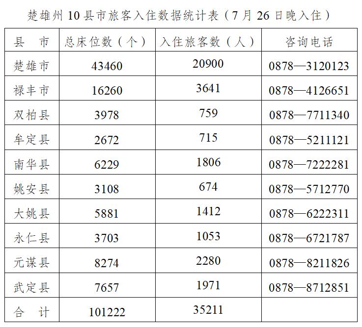 2024年7月29日,楚雄迎来一年一度的彝族火把节,各地游客从四面八方赶来,赴这场盛大的民族文化风情盛宴。为了让各位到楚雄的游客及时了解楚雄州10县市住宿信息,现公布楚雄州10县市旅客入住数据。