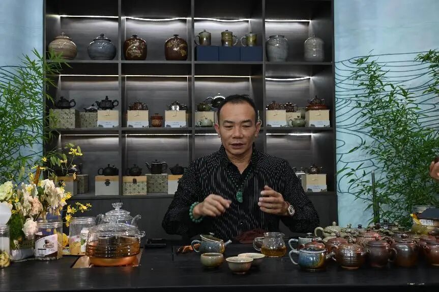 建水紫陶制壶高手徐健伟这次带了很多精品来参展,他向过往客商介绍,建水紫陶有着独特的工艺、深厚的文化底蕴,不仅体现了中国悠久的陶瓷文化,还融合了地方特色与创新设计理念。建水紫陶有着细腻的手感、优雅的浮雕造型以及良好的实用性。它有独特的透气性能,耐酸、耐温、防潮、保温久。著名的云南汽锅鸡就是用建水紫陶作为烹饪器具;用紫陶炊具盛藏食物,隔夜不馊;用紫陶花瓶插花,经久不凋。茶道爱好者尤其青睐建水紫陶,用紫陶茶壶泡茶,纯正不失原味,还能更好地提升茶叶的香气和口感。
