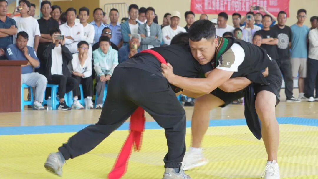 彝族摔跤比赛现场气氛热烈,观众的欢呼声此起彼伏,参赛选手身着民族服装在赛场展开了精彩的角逐,赛场上参赛选手利用自己的力量和技巧充分展现彝族摔跤的魅力。