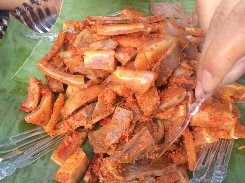 制作好的酸面肉色泽鲜红、味道微酸,可冷吃也可热吃。口味独特、清爽可口,是很多临沧人记忆中的味道,也是当地人招待客人、节日聚会必备的上品佳肴。