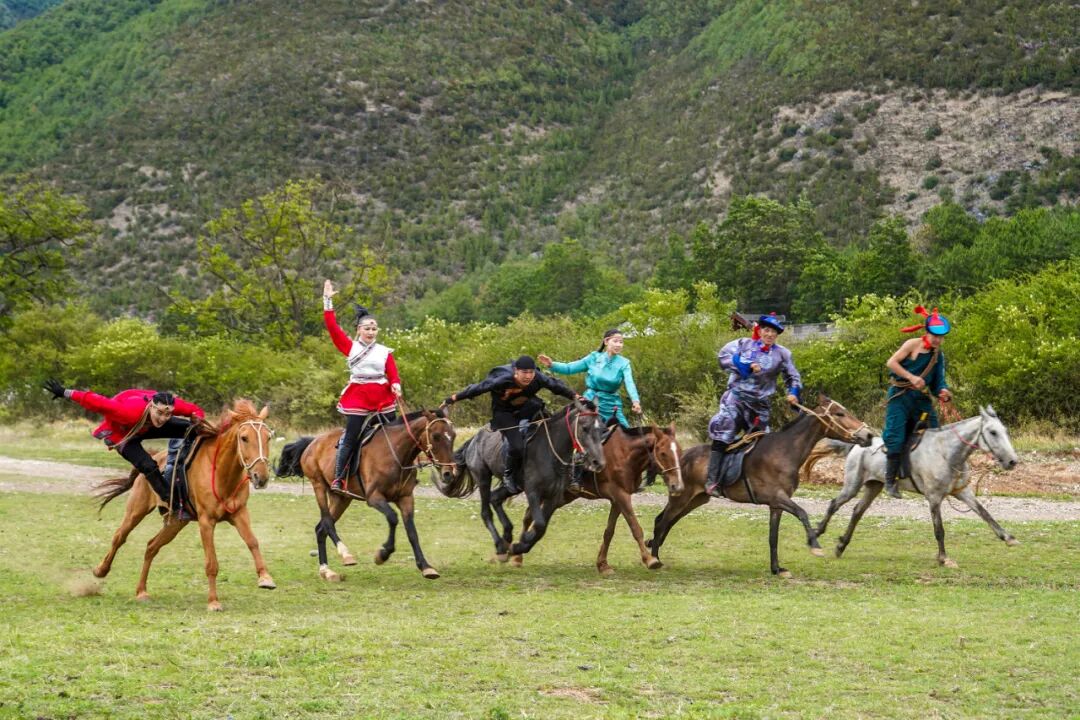 《革囊渡》是由猎鹰谷景区全新打造的历史题材大型马术实景剧,得名于天下第一长联《大观楼长联》中的“元跨革囊”典故,创作灵感源自忽必烈南征大理、丽江回归中原王朝的历史事件,以巍峨雄奇的玉龙雪山为天然舞台,重构诗史、再现传奇。