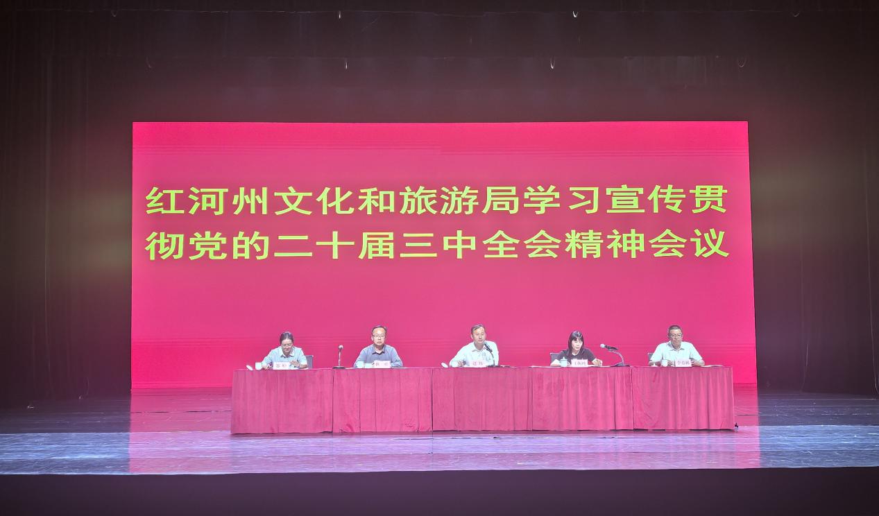 会议传达学习党的二十届三中全会、省委十一届六次全会、州委九届七次全会精神,并结合红河州文化和旅游工作实际,对贯彻落实会议精神进行安排部署。