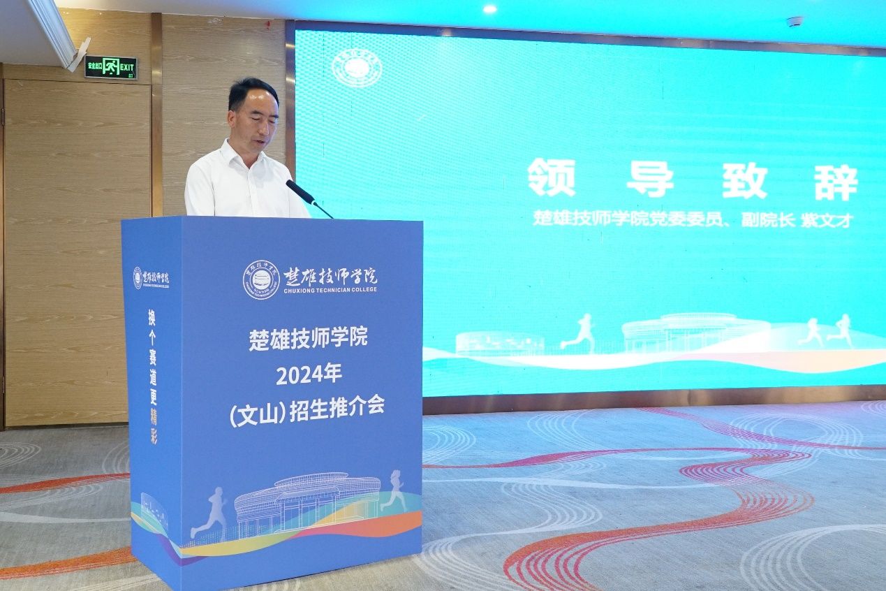 推介会上,楚雄技师学院党委委员、副院长紫文才表示,楚雄技师学院是云南省人民政府批准成立、楚雄州人民政府直接管理的国家公办技工类高等职业教育院校,与云南现代职业技术学院一体化融合办学,素有“滇中工匠摇篮”之称。诚挚邀请广大学子深入了解楚雄技师学院,感受浓郁的学习氛围和人文关怀。学院将竭尽全力,创造良好的学习环境和发展空间,帮助大家实现自己的梦想。