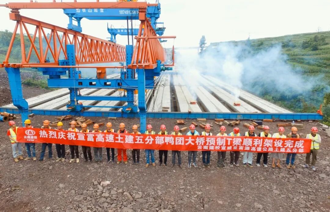 近日,宣威至富源高速公路鸭团大桥全部预制T梁顺利架设完成。鸭团大桥是宣富高速主线桥梁,连接保山沟特大桥,是特大桥运梁架梁的关键枢纽。