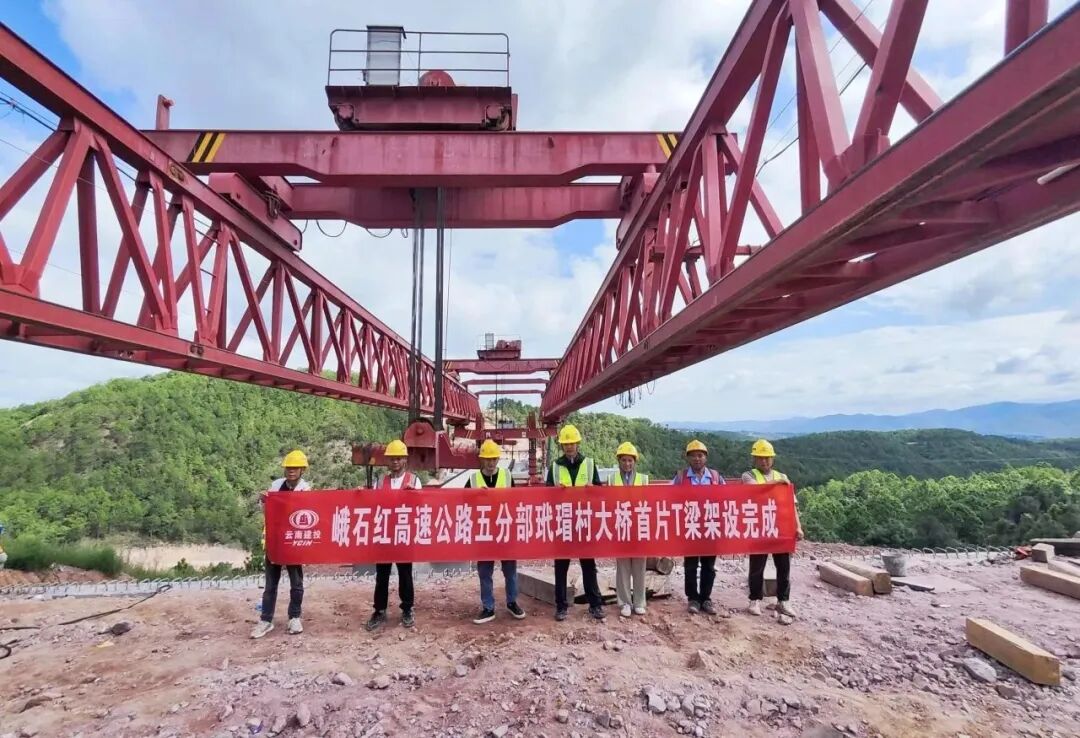 近日,随着架桥机完成最后一个落梁操作,峨山至石屏至红河高速公路(玉溪段)玳瑁村大桥首片预制T梁顺利架设。据了解,玳瑁村大桥全长366.08米。