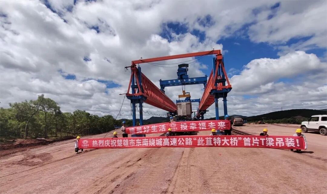 近日,楚雄市东南绕城高速项目此苴特大桥首片预制T梁架设完成,标志着3-2工区进入第四座桥梁上部结构施工阶段,此苴特大桥全长1068.08米。