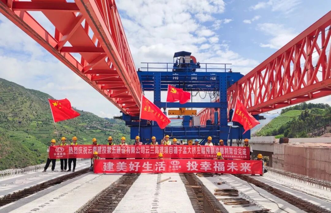 近期,大理至漾濞至云龙至兰坪高速公路云龙至兰坪段(以下简称“云兰高速”)铺子孟大桥左幅T梁架设完成,该大桥已全面完成T梁架设任务。铺子孟大桥左幅为4联,共89片预制T梁,右幅2联,共35片预制T梁。云兰高速七登山3号大桥全部T梁也顺利完成架设。七登山3号大桥位于云龙县白石镇七登山村,左幅全长759米,右幅全长609米,全线共计225片30米T梁。