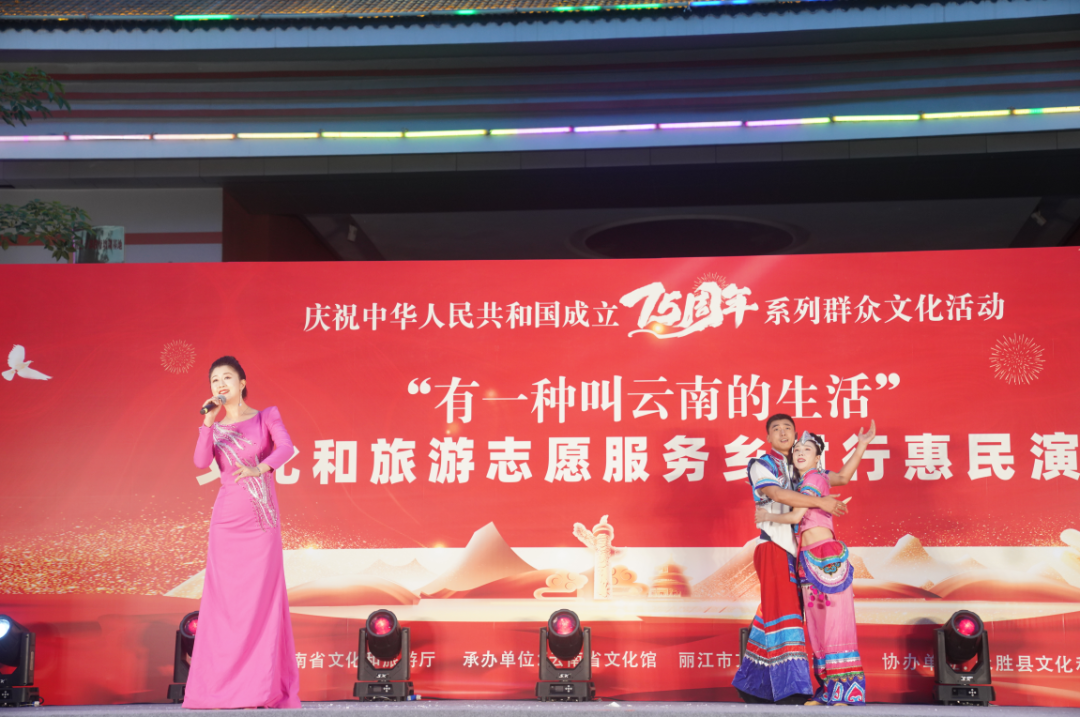 为庆祝中华人民共和国成立75周年,展现群众文艺发展成果,加强文化和旅游志愿服务队伍建设,丰富群众文化生活,助力乡村文化振兴,8月17日晚8时,“有一种叫云南的生活”为主题的文化和旅游志愿服务乡村行惠民演出活动在丽江市永胜县开场。
