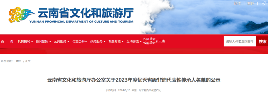 云南省文化和旅游厅办公室关于2023年度优秀省级非遗代表性传承人名单的公示