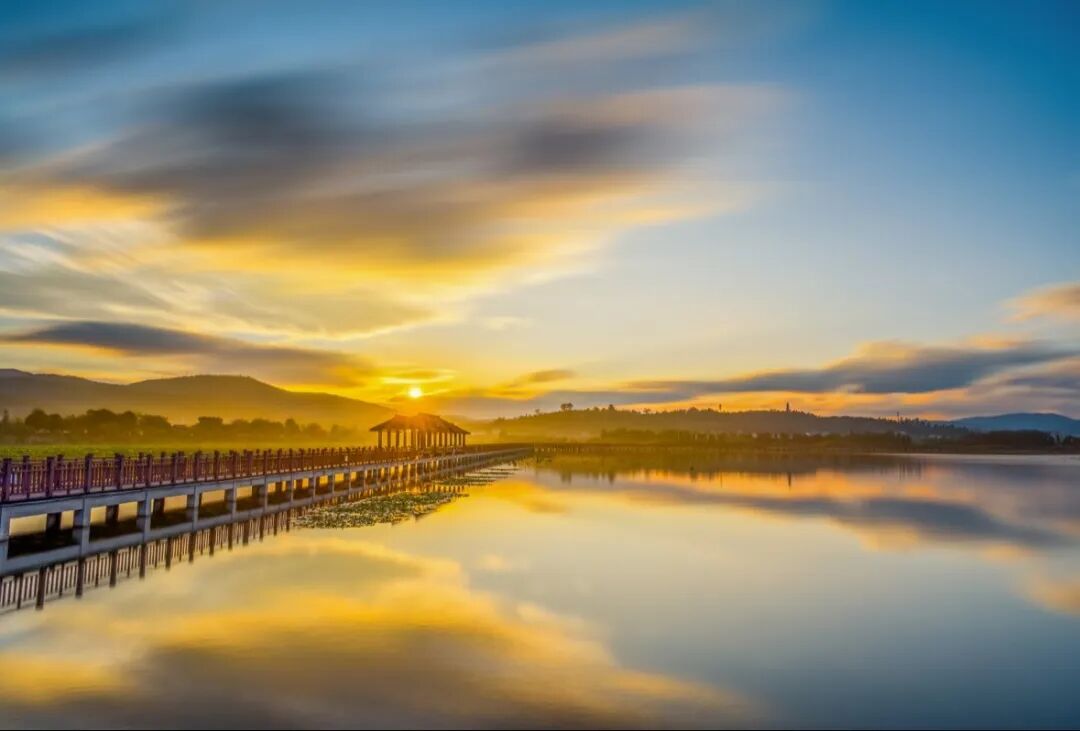 到异龙湖国家湿地公园乘观光车或骑自行车,沿“最美高原湖泊专用赛道”游览打卡沿湖主要景点,欣赏“秀美异龙湖”山水风光。