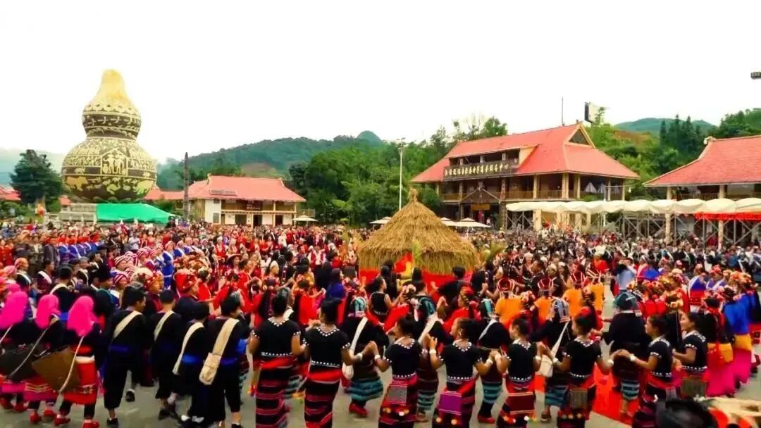 小镇内红色弧形屋顶特色民居与文化墙、喷水葫芦、打歌广场、寨心砖、葫芦塔、佤王府等佤族特色建筑巧妙的融合在一起,形成依山傍水、景色秀美、佤族文化特色浓郁。火塘酒歌、月下情歌、庆丰收等传统文化传递着阿佤人民的无限魅力。甩发舞热情奔放,飘逸的长发像黑色的瀑布,显示出佤族姑娘对美好生活的向往和追求。小镇每年都会举行大型的摸你黑狂欢节、新米节、佤族音乐节等,四方的朋友聚集在此享受狂欢的节日盛宴。欢迎来沧源葫芦小镇品佤族美食、听月下情歌、纵情篝火狂欢、入住部落民宿。
