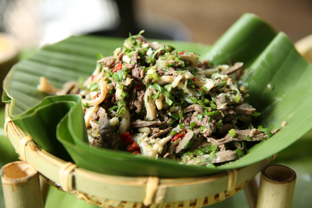 傣族牛撒撇制作技艺是临沧市第二批市级非物质文化遗产名录。“牛撒撇”是傣家人专门用来招待客人的一道上好菜肴。“撒”系傣语,汉语意味凉拌,“撇”是苦肠的意思,因此“撒撇”也是苦肠水凉拌的意思。牛撒撇具有苦、辣、凉、甘甜、细腻可口的特点,耿马人民对牛撒撇有着特别的偏好,不仅自己喜欢吃,还是招待客人的上好食品。