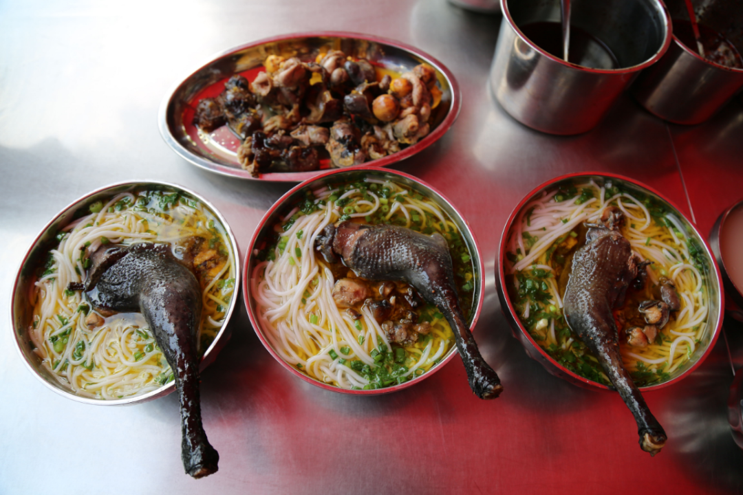 2、做法:先将鸡宰杀去毛清洗干净后,加入适量盐巴和胡椒、草果、八角等各种香料入锅煮熟,再加佐料配制精卤。米线用滚汤烫热捞出入碗,加新鲜鸡肉汤,盖以卤鸡汁鸡块,加上红红的辣椒油、芫荽、葱、酱油、味精等佐料,其口味鲜美、香气四溢。