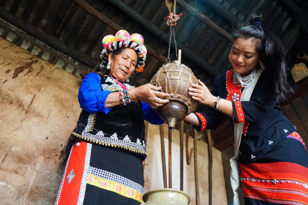 佤族水酒酿制技艺是临沧市第三批市级非物质文化遗产保护名录,其佤语称“布来浓”,属于“低度酒”。佤族水酒文化习俗既具有自然崇拜、万物有灵的原始宗教信仰特征,又是天人合一、遵循自然规律的重要内容。世代流传的“祝酒辞”,在佤族水酒文化中创造了一套特殊的酒礼,铸就了民族的灵魂。