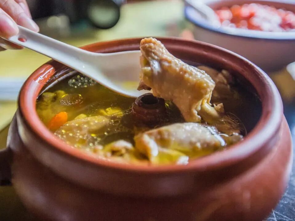 用建水紫陶制作的气锅蒸本地的土鸡,历经时间磨砺,蒸汽液化成汤,喝上一口鲜美至醇的鸡汤,吃一块滑嫩的鸡肉,再也忘不了这个带来无数情绪价值的小城。
