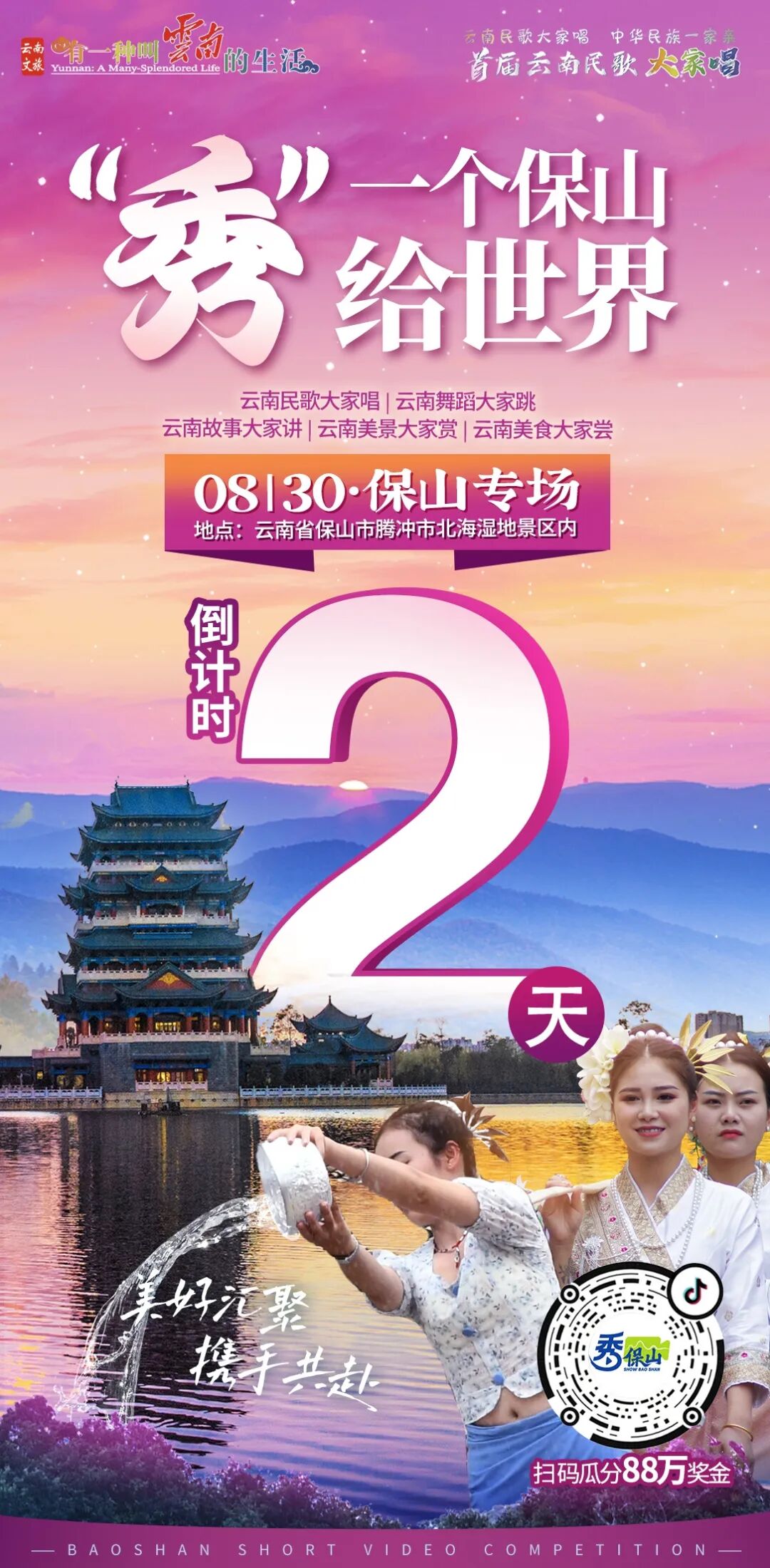 为深入贯彻落实党的二十大精神和习近平文化思想,弘扬中华优秀传统文化,落实推进旅游促进各民族交往交流交融计划,根据云南省文化和旅游厅关于开展“有一种叫云南的生活”IP打造要求,8月30日将在腾冲举办“云南民歌大家唱、云南舞蹈大家跳、云南故事大家讲、云南美景大家赏、云南美食大家尝”保山专场活动。