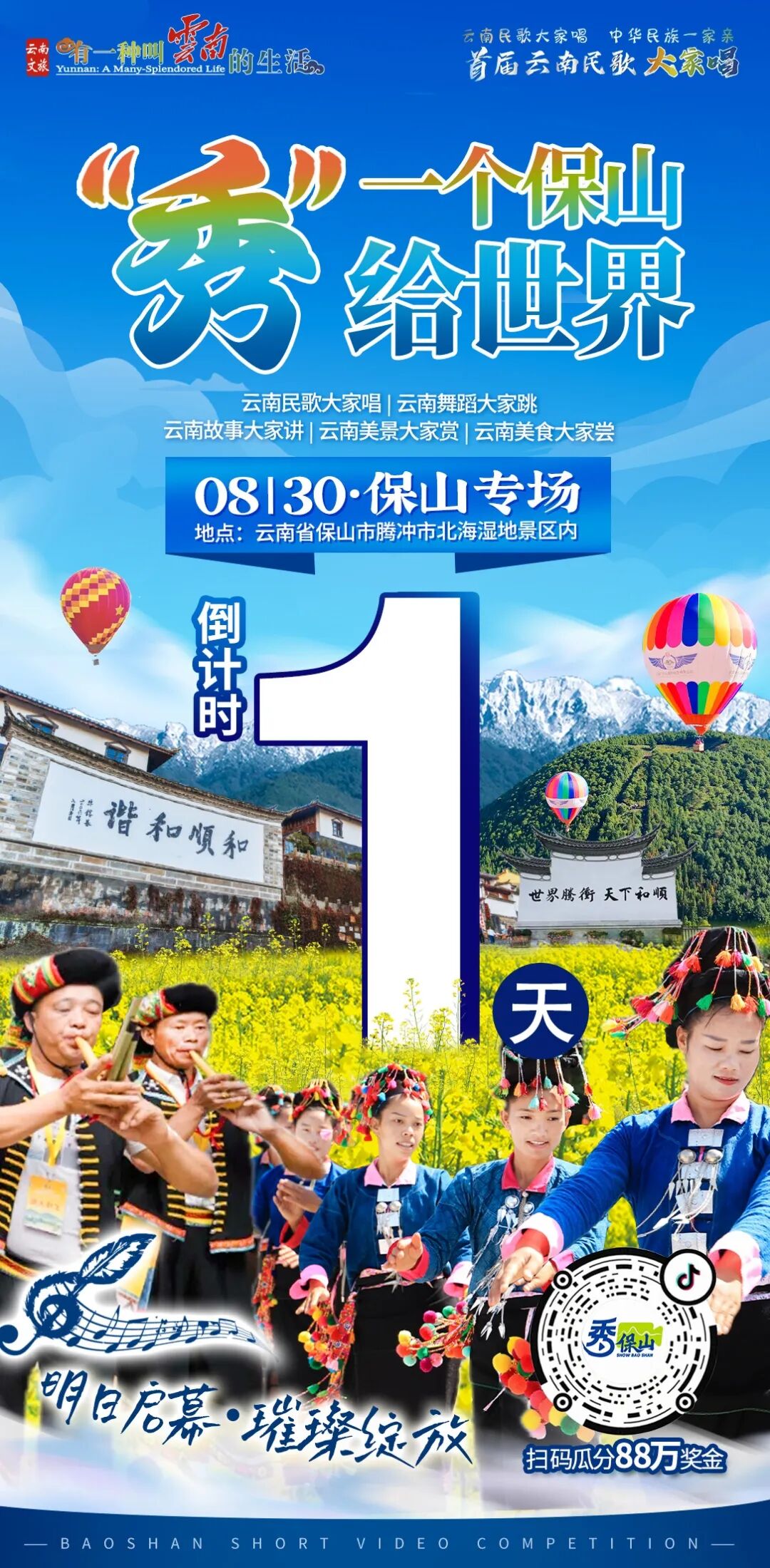 深入贯彻落实党的二十大精神和习近平文化思想,弘扬中华优秀传统文化,落实推进旅游促进各民族交往交流交融计划,根据云南省文化和旅游厅关于开展“有一种叫云南的生活”IP打造要求,8月30日将在腾冲举办“云南民歌大家唱、云南舞蹈大家跳、云南故事大家讲、云南美景大家赏、云南美食大家尝”保山专场活动。