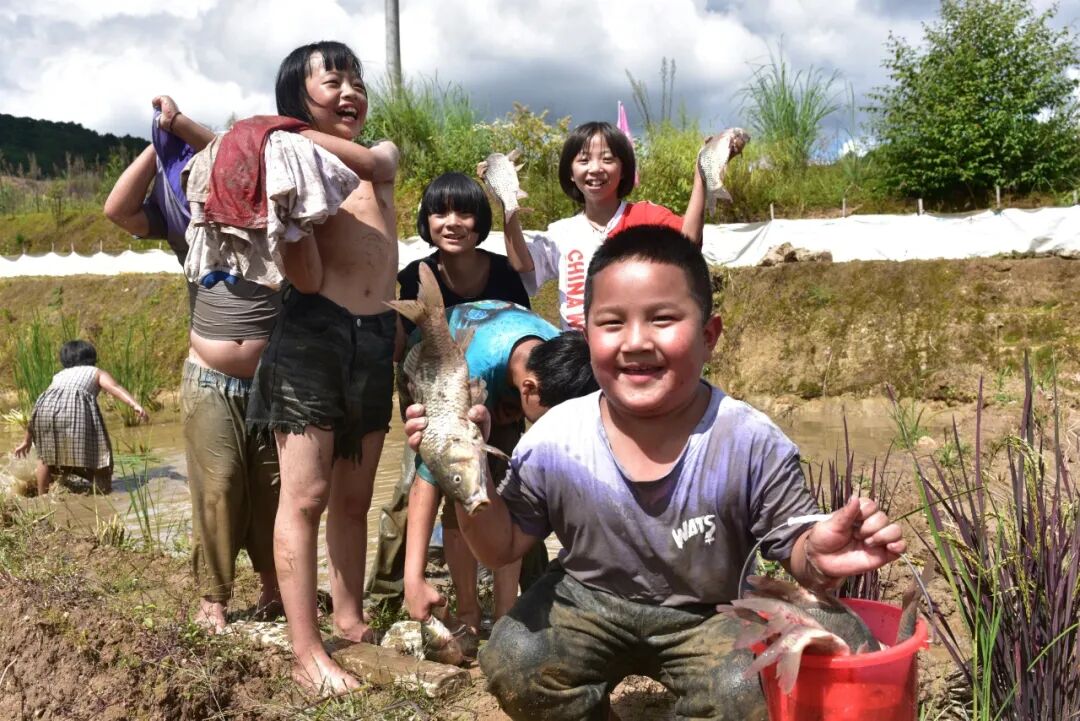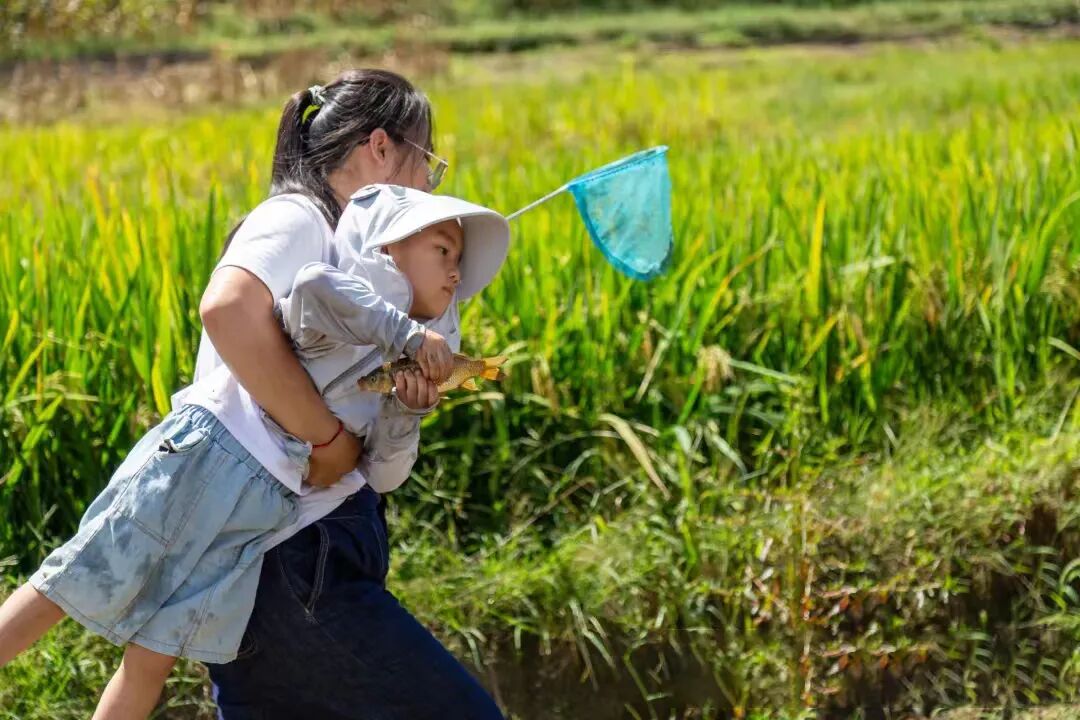 凤庆县勐佑镇河西田园综合体则是另一番景象。在这里,600亩水稻进入抽穗期,一片翠绿盎然。孩子们在家长的陪伴下,可以参与“醉美乡愁·鱼你有约”稻田放鱼活动,亲手将小鱼苗放入稻田中,感受生命的奇迹和自然的和谐。而在国庆期间,这里还将举办稻田摸鱼大赛,更是让孩子们兴奋不已。