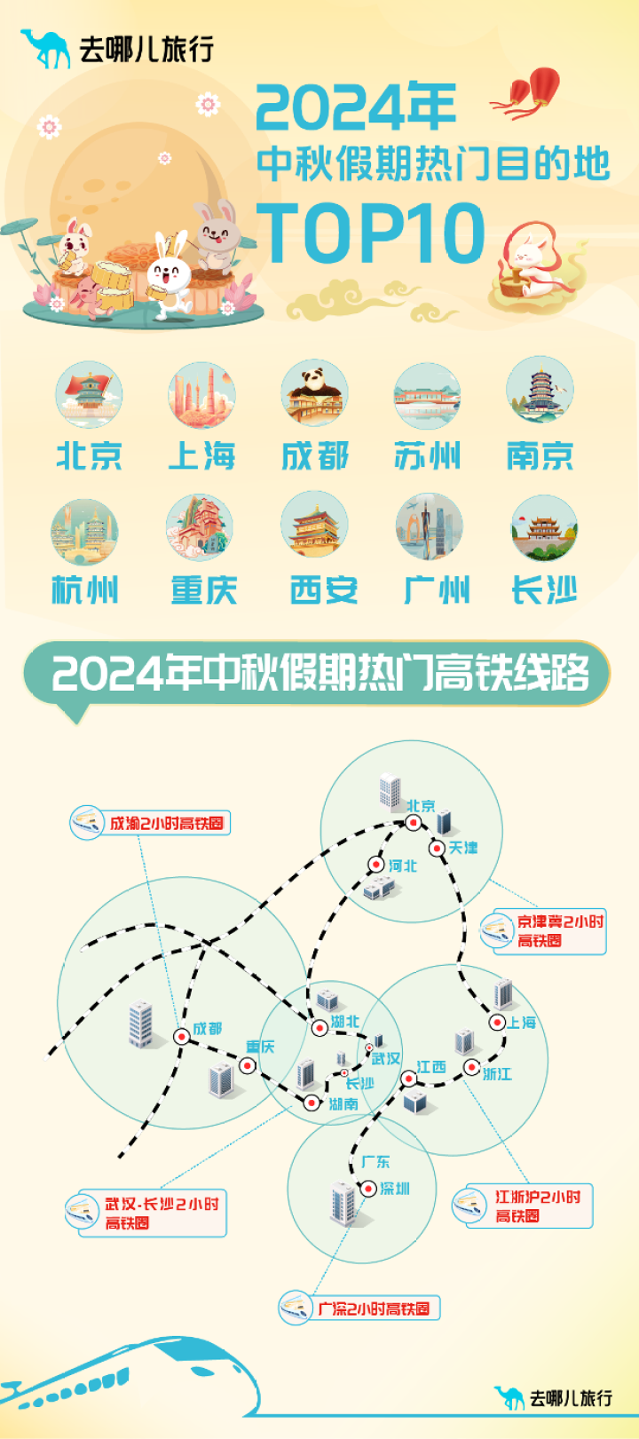 (中秋假期热门目的地TOP10、热门高铁线路 去哪儿 供图)