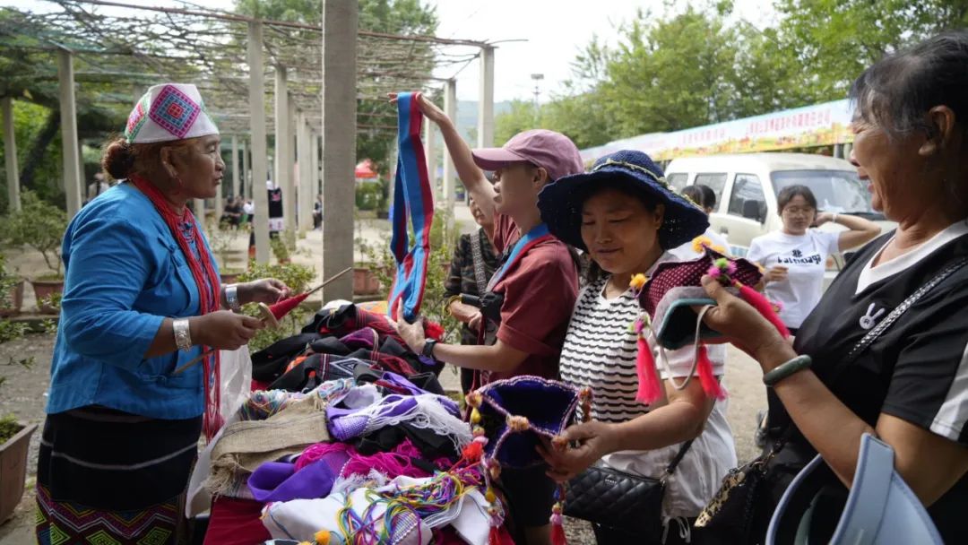 在展览展示区,云南省第六届群众文化“彩云奖”入围的美术、书法、摄影作品琳琅满目,让人目不暇接。画家们用细腻的笔触描绘出田园的宁静与美丽;书法家们用遒劲的笔力书写着对农业的热爱和对农民的敬意;摄影师们用镜头捕捉到了乡村生活的瞬间美好。同时,佤族织锦、云县瓦房帽等非遗项目的展示也让人们更加深入地了解了这片土地的文化和传承。游客和参赛者纷纷驻足观看,体验购买,感受非遗文化的独特魅力。