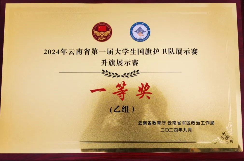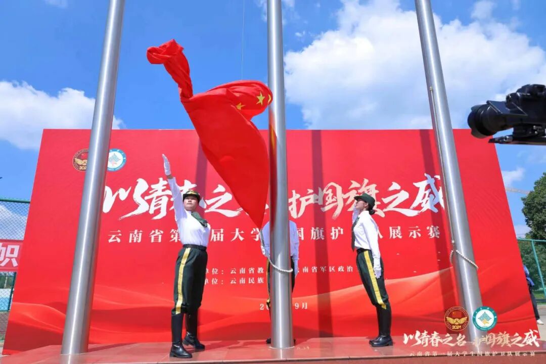 9月21日上午,云南省第一届大学生国旗护卫队展示决赛在云南民族大学雨花校区圆满落幕,云南现代职业技术学院国旗护卫队以出色的表现荣获升旗展示“一等奖”,展现了学院学子的卓越风采和团结拼搏精神。