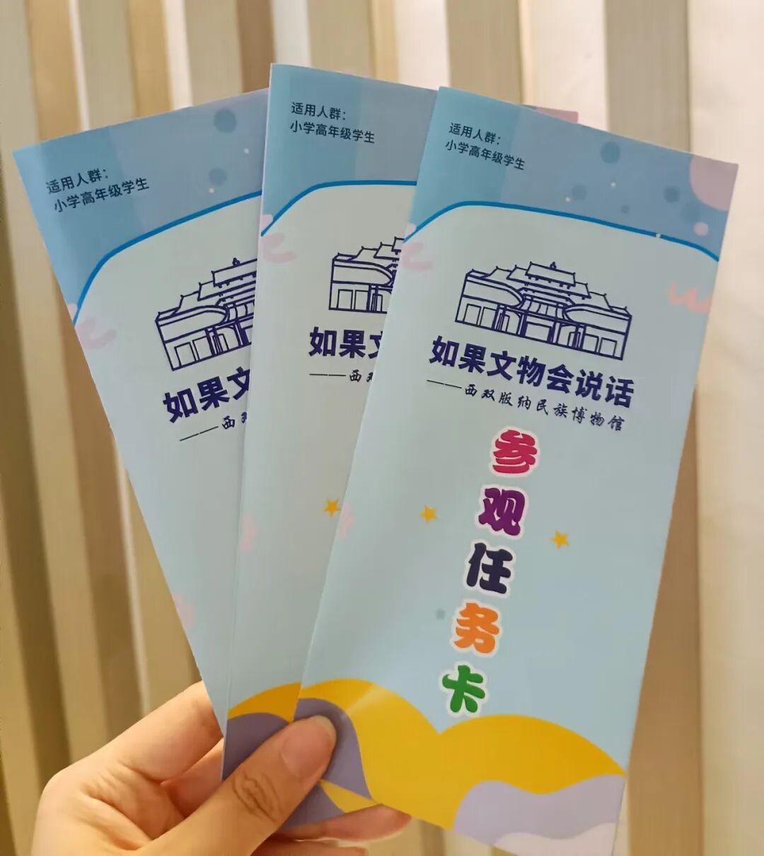 参与活动的游客可先到“我和国旗合个影”签到墙处进行签到拍照打卡,然后到博物馆服务台领取一份博物馆参观任务卡,并在博物馆展厅内寻找“西双版纳”的历史、文物、民族文化等,完成任务卡内容。完成任务后,凭任务卡到博物馆服务台进行核实并领取奖励。