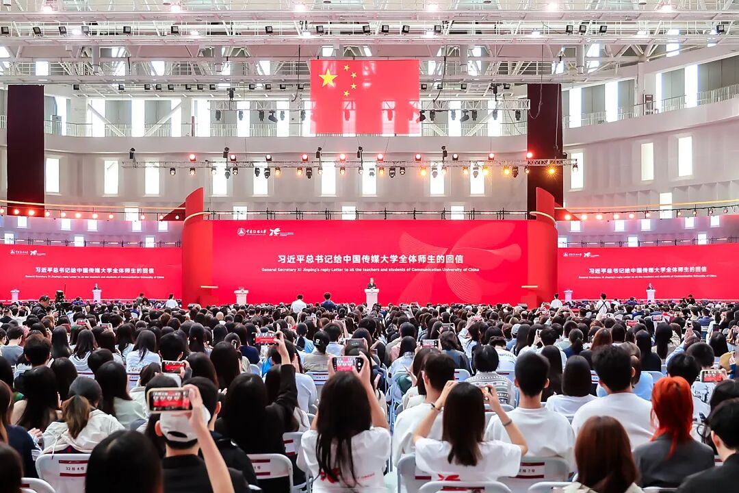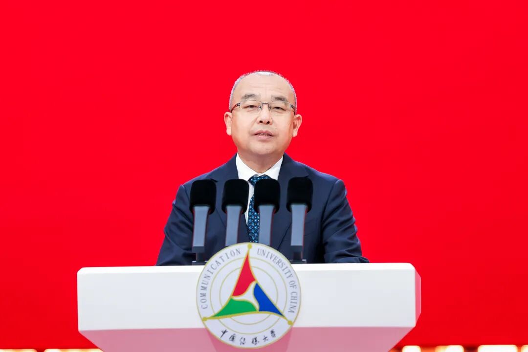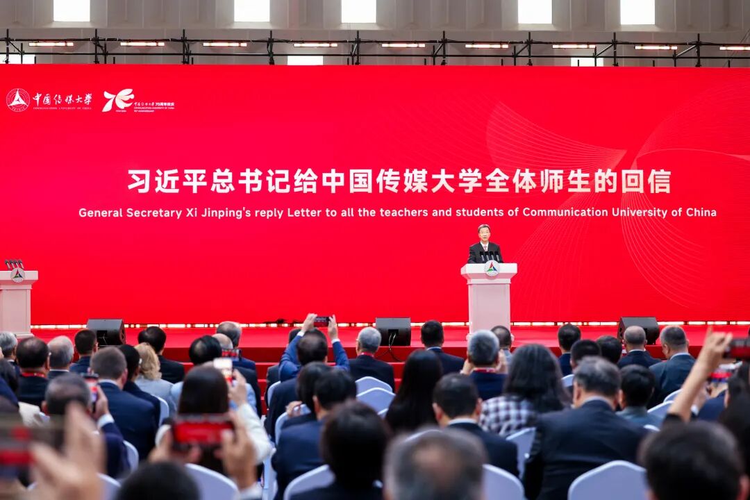 教育部党组书记、部长怀进鹏宣读习近平总书记给中国传媒大学全体师生回信并讲话。