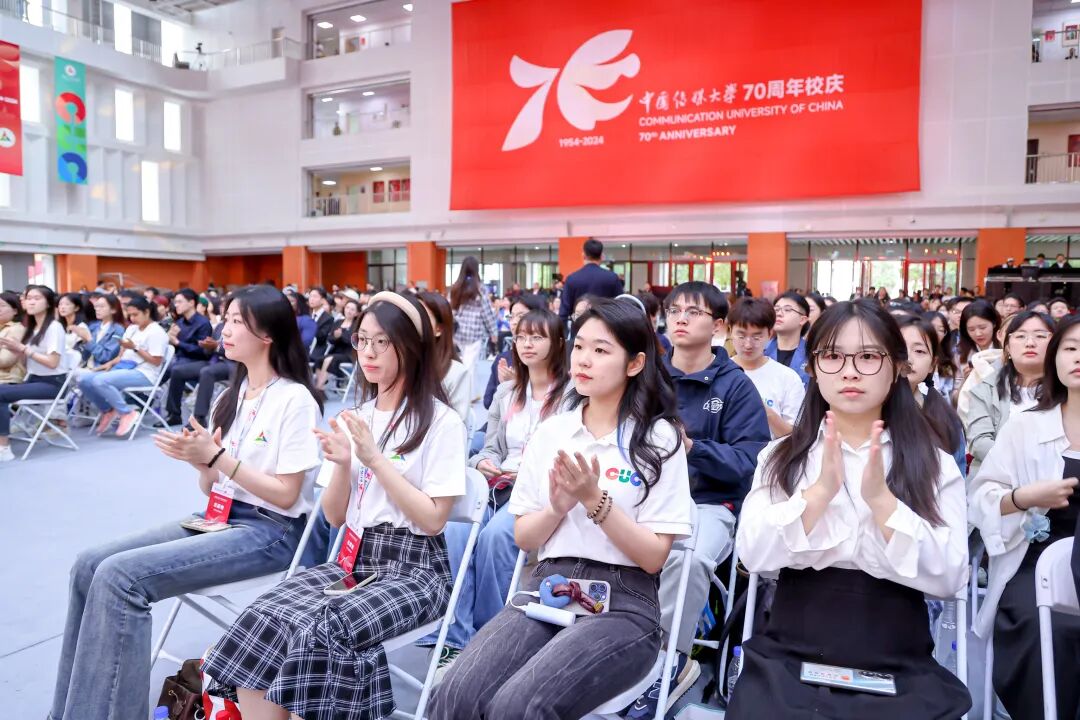 廖祥忠深情回顾了学校“因广播而起、因电视而兴、因网络而盛”的70年发展史。他表示,70年校史印证了新中国传媒高等教育的发展史,是一部中传人担纲党和国家传媒事业星火赓续、使命传承、改革创新的奋斗史。近年来,学校按照党中央和教育部党组、北京市教育两委的统一部署,从战略和全局角度看问题、想办法、做决策,完成了面向未来的系统性、结构性大布局,开创性提出“系统治理、创新驱动、交叉融合、特色发展”的治校理念,在前所未有的挑战中励精图治、创新图强。如今的中传是满腔赤诚、奋进竞先、如诗如画、为未来而来的中传!廖祥忠表示,70年,是一个新的起点。中国传媒大学将按照习近平总书记重要回信要求,聚焦新闻舆论工作需要,突出办学特色,深化改革创新,将新时代传媒教育事业全面融入党和国家发展大局。必须坚定不移地落实好立德树人的根本任务;必须坚定文化自信,以传媒之力弘扬中华文明,筑牢立德树人的思想根基;必须掌握驾驭人工智能的能力,以传媒之力深化改革创新,激发立德树人的创新能力必须聚焦新闻舆论工作需要,以传媒之力推动文明互鉴,担当立德树人的时代使命。培养中传学子以传媒为桥梁,传递人性的光辉,弘扬时代的正气,在纷繁复杂的世界里播撒温暖,播种希望,让因广播而起、因电视而兴、因网络而盛的中国传媒大学,在未来,必将因AI而强,全力落实好总书记重要回信的殷殷嘱托,奋力谱写“教育强国、中传有为”的崭新篇章!