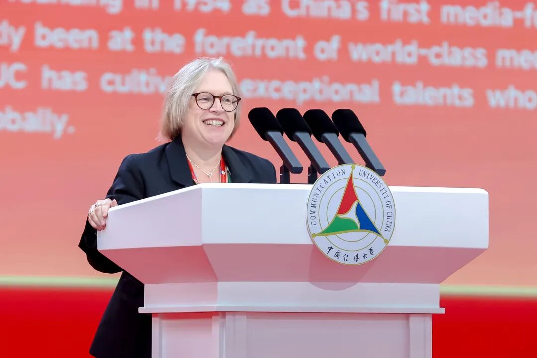 英国皇家霍洛威大学校长朱莉·桑德斯教授在致辞中表示,中国传媒大学作为中国首家专注于传媒领域的高等教育机构,始终走在世界一流传媒与艺术教育的前沿。由中国传媒大学发起成立的“传媒高等教育国际联盟”具有变革性的影响力,它促进了高水平的合作,推动了全球范围内的传媒知识与资源的共享,并展现出对通过研究与教育培养人才的高度重视。英国皇家霍洛威大学非常荣幸能成为中传的合作伙伴,希望中国传媒大学与各大学开创出更加开放、联动、包容的发展图景,期待未来能够有更多的成功合作!作为校庆系列活动,学校于9月25日举办了一系列高水平论坛,各论坛成果发布仪式在大会现场举办。